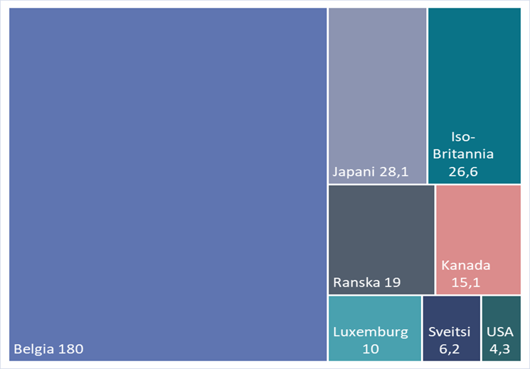 Venäjän keskuspankin jäädytettyjä varoja lähes 290 mrd. euroa Ukrainaa tukevissa maissa