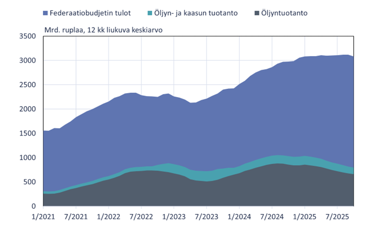 Öljytulojen osuus Venäjän federaatiobudjetin tuloista on supistunut