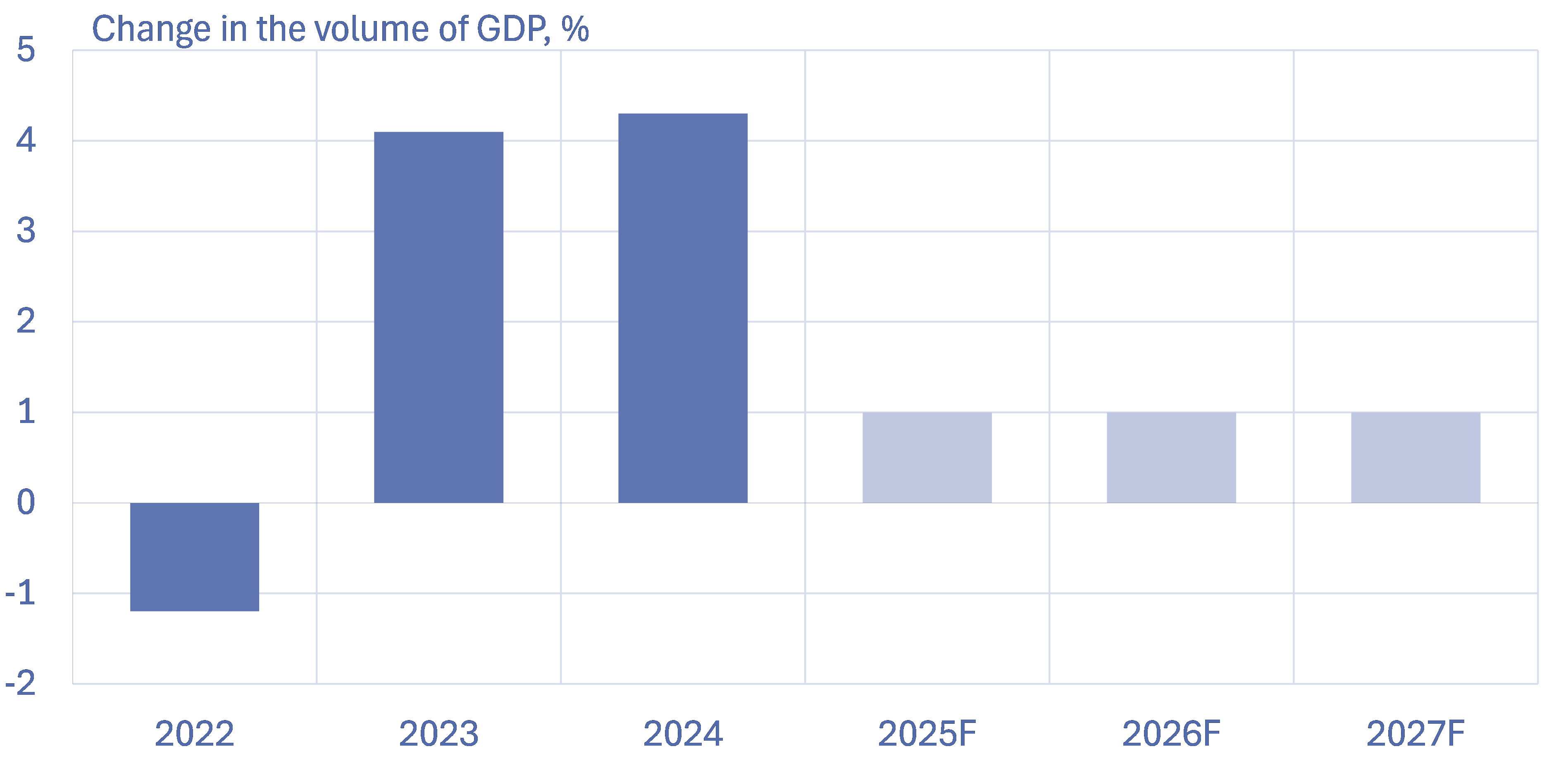 Our latest BOFIT Forecast for Russia 2025–2027, released on Monday (Oct. 20), expects Russia’s economy to grow by 1 % at most this year. Barring significant policy shifts or a large external shock, we see Russian GDP growing annually at around 1 % also in 2026 and 2027. While a full-blown economic crisis is currently not in sight, Russian economy faces significant risks as long as Russia continues its war in Ukraine.
