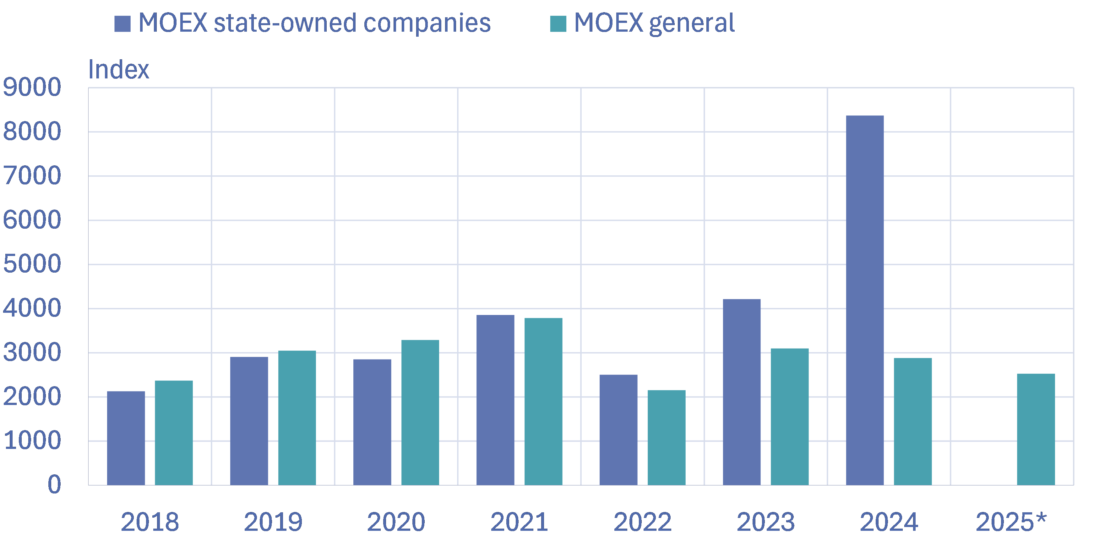 * 2025 refers to end-October. MOEX releases its State-Owned Companies Index (SCI) once a year. The weighting of the index is not published, and figures for this year have not yet been released.