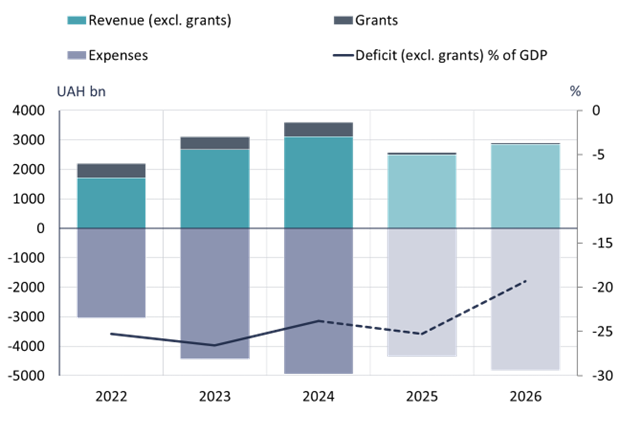 The draft budget calls for a public sector deficit next year of roughly 1.9 trillion hryvnia ($42 billion) or 19 % of GDP. According to Ukraine’s finance ministry, next year’s yet-to-be-filled financing gap is about $18 billion. The largest sources of next year, similar to 2025, are the G7’s Extraordinary Revenue Acceleration (ERA) lending programme, which is funded from the proceeds from Russian central bank assets held in G7 countries, as well as the EU’s Ukraine Facility.