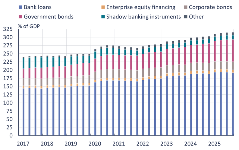 The stock of bank loans grew by 6.2 % last year. While this rate was lower than in previous years, it still outpaced nominal GDP growth (4 %). The stock of household loans shrank by 1 % last year. Despite interest subsidies for consumer loans, the stock of short-term loans to households shrank by 7 % in 2025. Demand for housing loans has also been low as the real estate market crisis drags on.