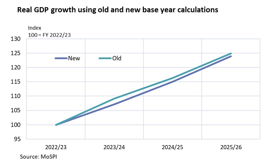 In February, India’s Ministry of Statistics and Programme Implementation (MoSPI) updated its base year for national accounts (GDP), the Consumer Price Index (CPI) and the Index of Industrial Production (IIP). The updates were long-awaited; the previous base year was fiscal year 2011/12 (India’s fiscal year runs from April to March). Assumptions used when drafting figures include the structure of production and consumption, which are based on detailed assessments of base year figures. Base year updates help assure that statistical data remains relevant to current circumstances.