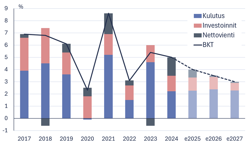 BOFIT Kiina-ennuste 2025–2027 ja kasvukontribuutiot